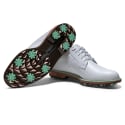 Golfskon FJ Premiere Field är designad för att leverera både stil och prestanda på golfbanan. Skon har en VersaTrax+ yttersula som ger utmärkt grepp och stabilitet under svingen. Golfskon är helt vattentät med 2 års garanti, så att du kan spela i alla väderförhållanden med tillförsikt. OrthoLite EcoPlush Fit-Bed® säkerställer en bekväm och stödjande passform hela dagen lång. Pulsar-klossarna från Softspikes® och Fast Twist 3.0-klosssystemet låter dig anpassa ditt grepp efter behov. De lågprofilerade spikarna hjälper dig att hålla dig planterad på banan, medan det handplockade premiumlädret Chromoskin™ ger skon en lyxig finish. Med golfskon FJ Premiere Field kan du fokusera på ditt spel och lita på att dina skor håller jämna steg med dig på greenen.